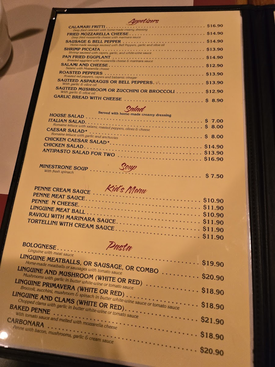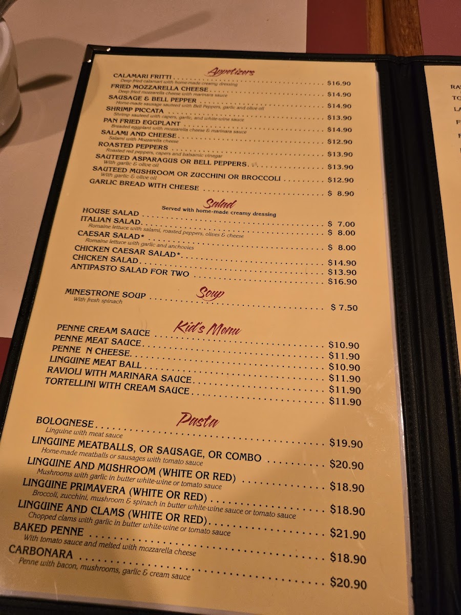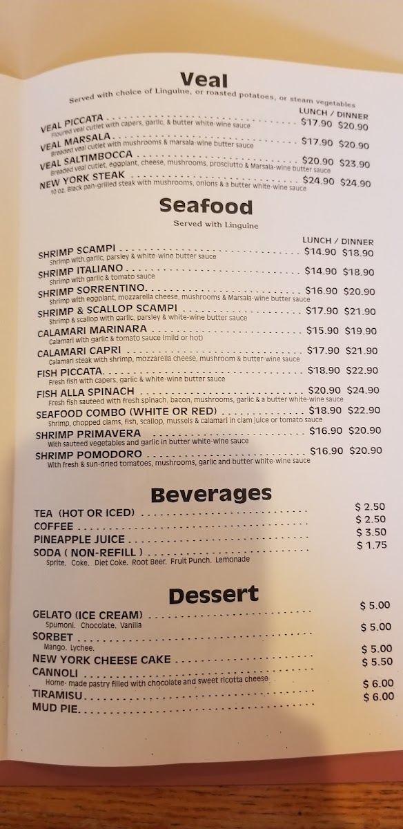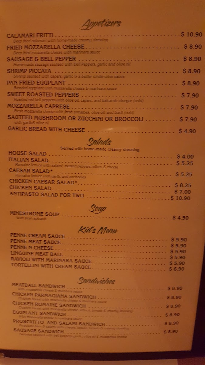 Vegetarians will rejoice at the Eggplant Sandwich, generously layered with mozzarella cheese and marinara sauce, all for a sweet $15.90. And if you're in the mood for something hearty, you can't go wrong with the Shrimp Sorrentino, a standout choice specialty that has loyal customers returning time and again. Dessert is equally delightful; the homemade tiramisu and complimentary cheesecake are not to be missed, with many diners commenting on their perfect balance of sweetness.