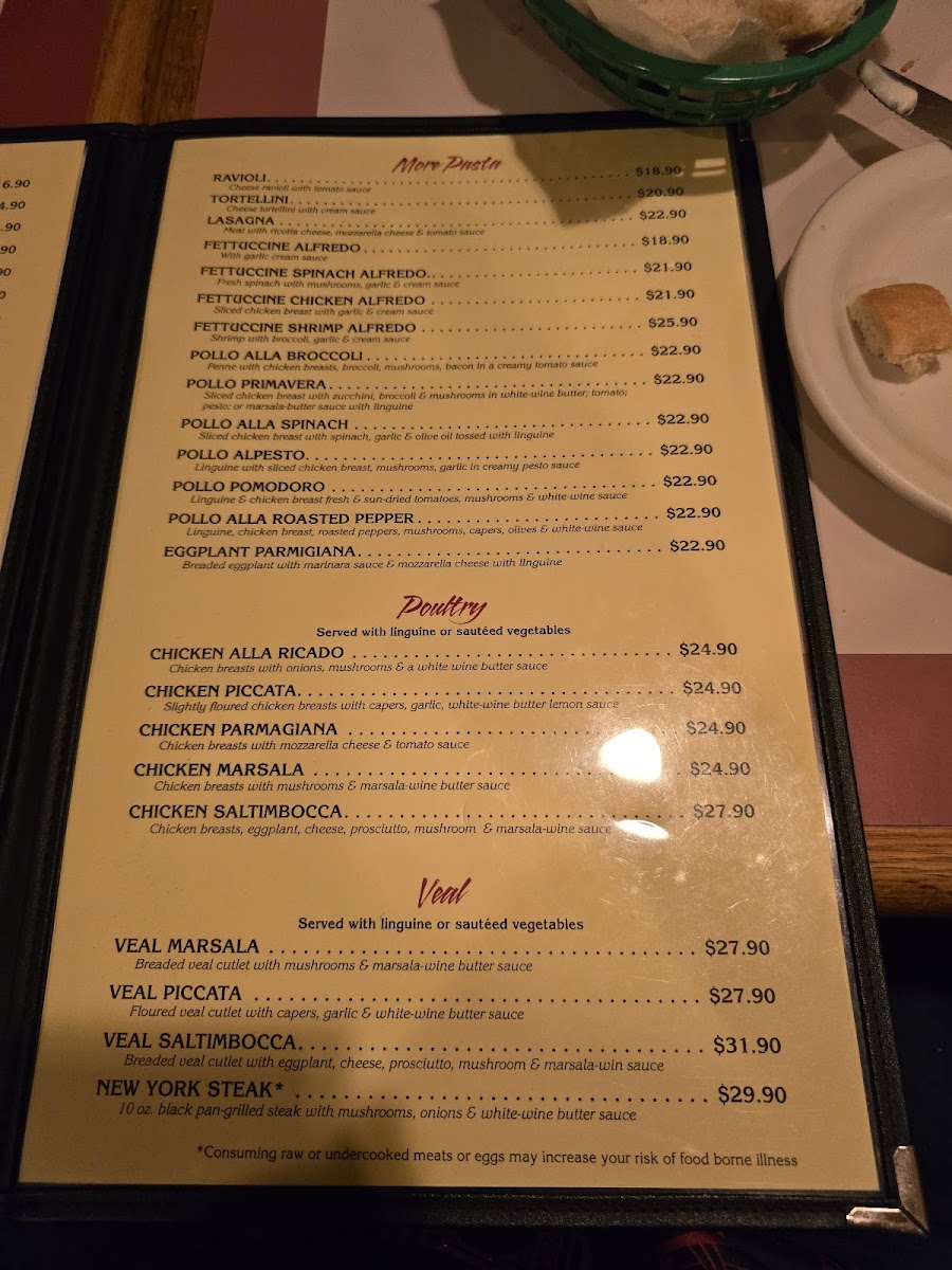 Ricado's menu showcases a delectable array of Italian offerings that are sure to tantalize your taste buds. Begin your meal with their signature Veal Saltimbocca, where tender breaded veal cutlets are paired with rich marsala wine butter sauce, eggplant, and mushrooms—an exquisite combination that dances on your palate for just $28.90. For steak lovers, the New York Steak is a must-try, featuring a perfectly grilled 10 oz. black pangrilled steak kissed by a buttery white wine sauce, priced at $31.90.